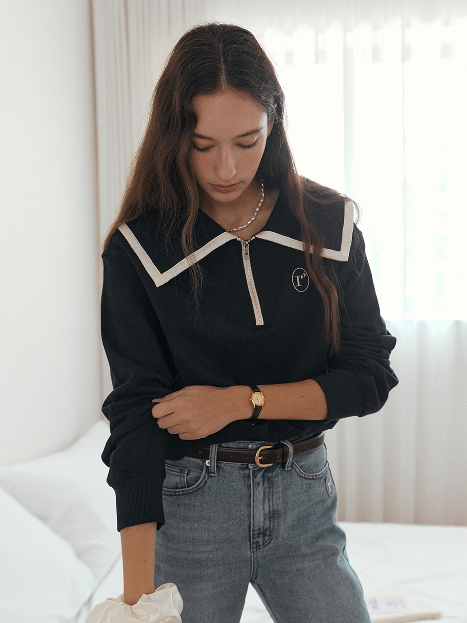 - Item name : COLLAR HALF ZIPUP SWEATSHIRT NAVY
