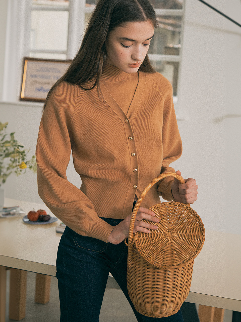COLLAR BUTTON KNIT CARDIGAN IVORY