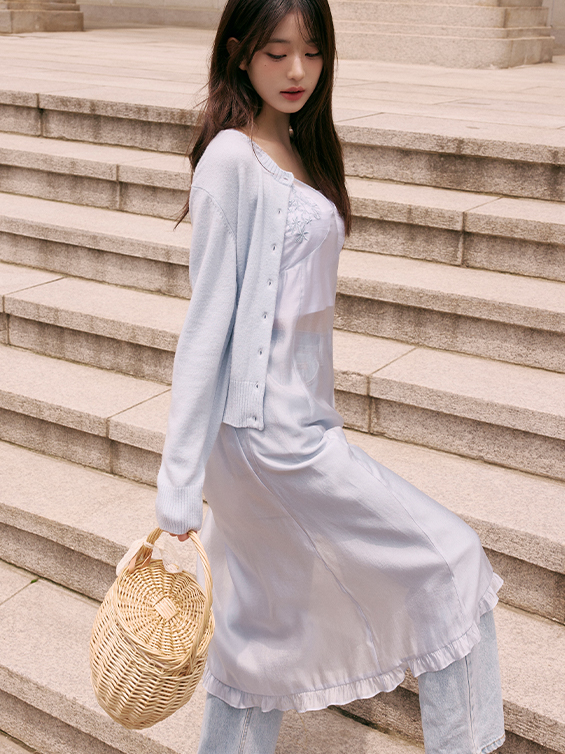 WOOL BLENDED RIBBON STRIPE KNIT GY+BK