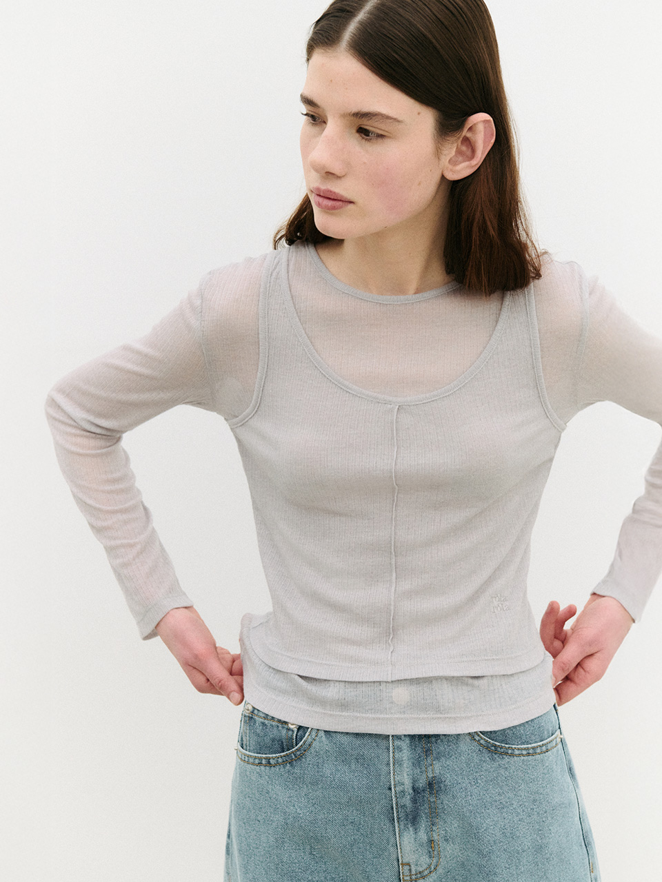 SHIRRING SLEEVELESS CARDIGAN SET BLUE