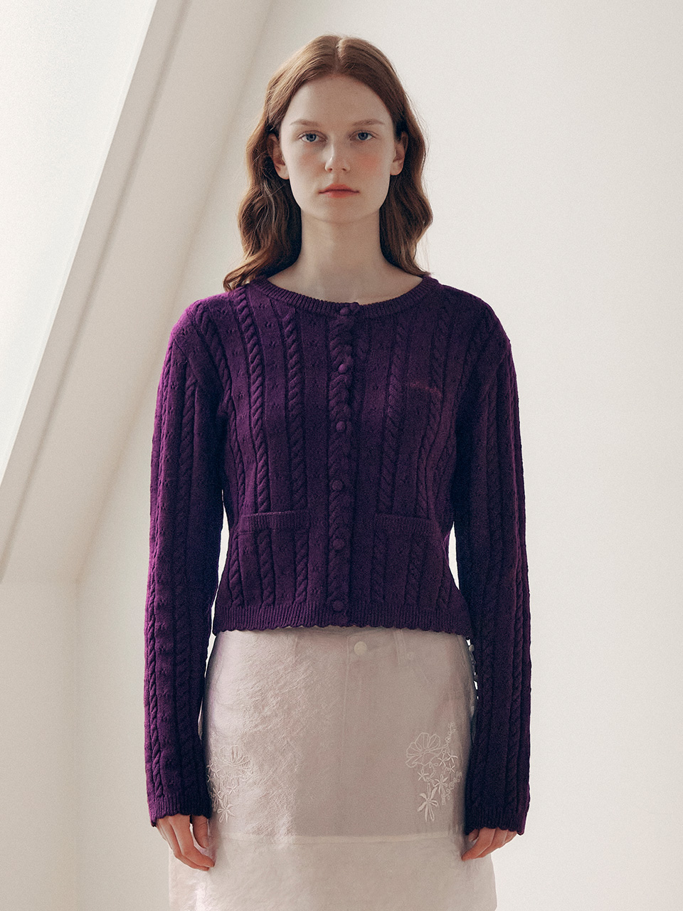 SHIRRING BUTTON UNBALANCE CARDIGAN IVORY