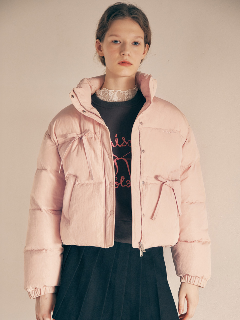 RIVET PINTUCK WIDE PANTS CHARCOAL