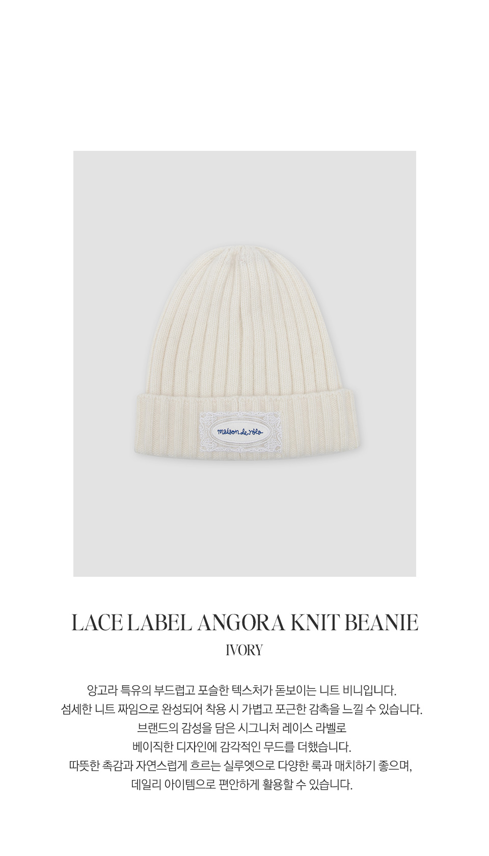 LACE LABEL ANGORA KNIT BEANIE IVORY