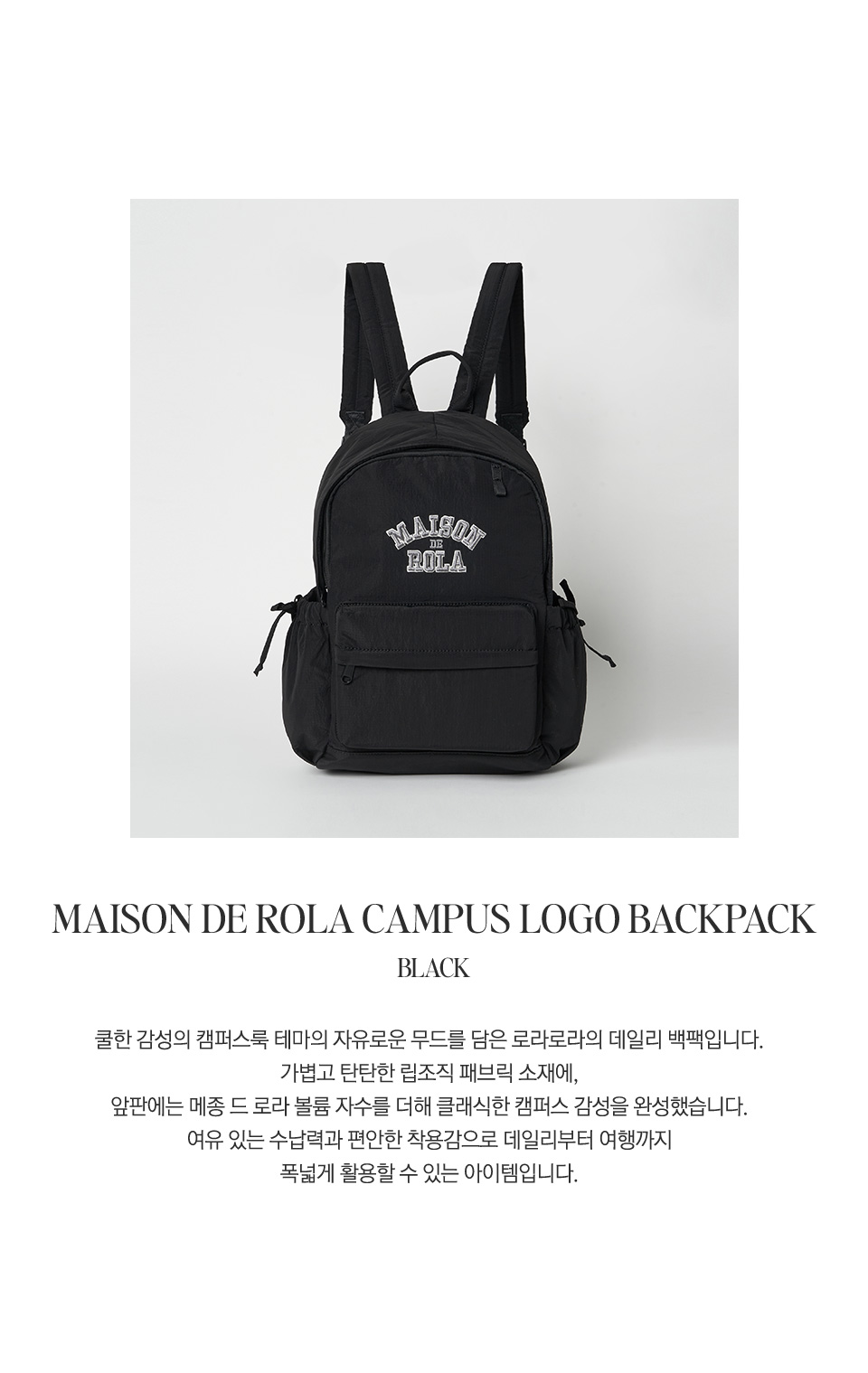MAISON DE ROLA CAMPUS LOGO BACKPACK BLACK