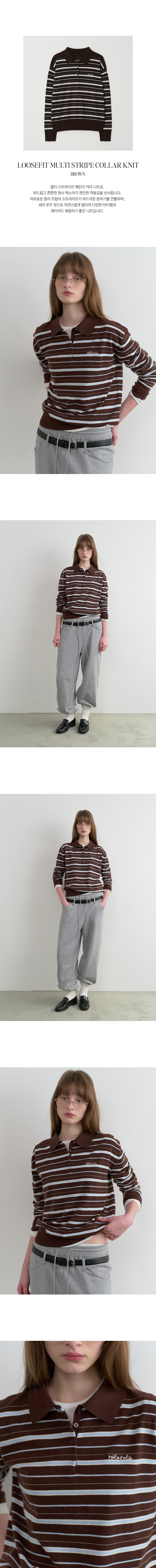 LOOSEFIT MULTI STRIPE COLLAR KNIT BROWN