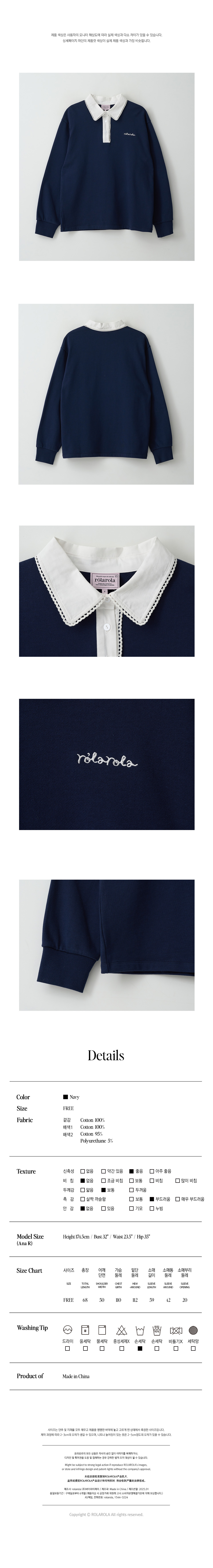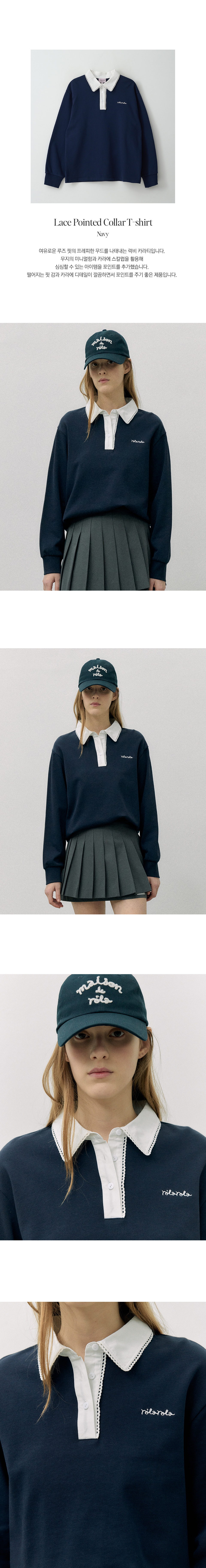 LACE POINTED COLLAR T-SHIRT NAVY